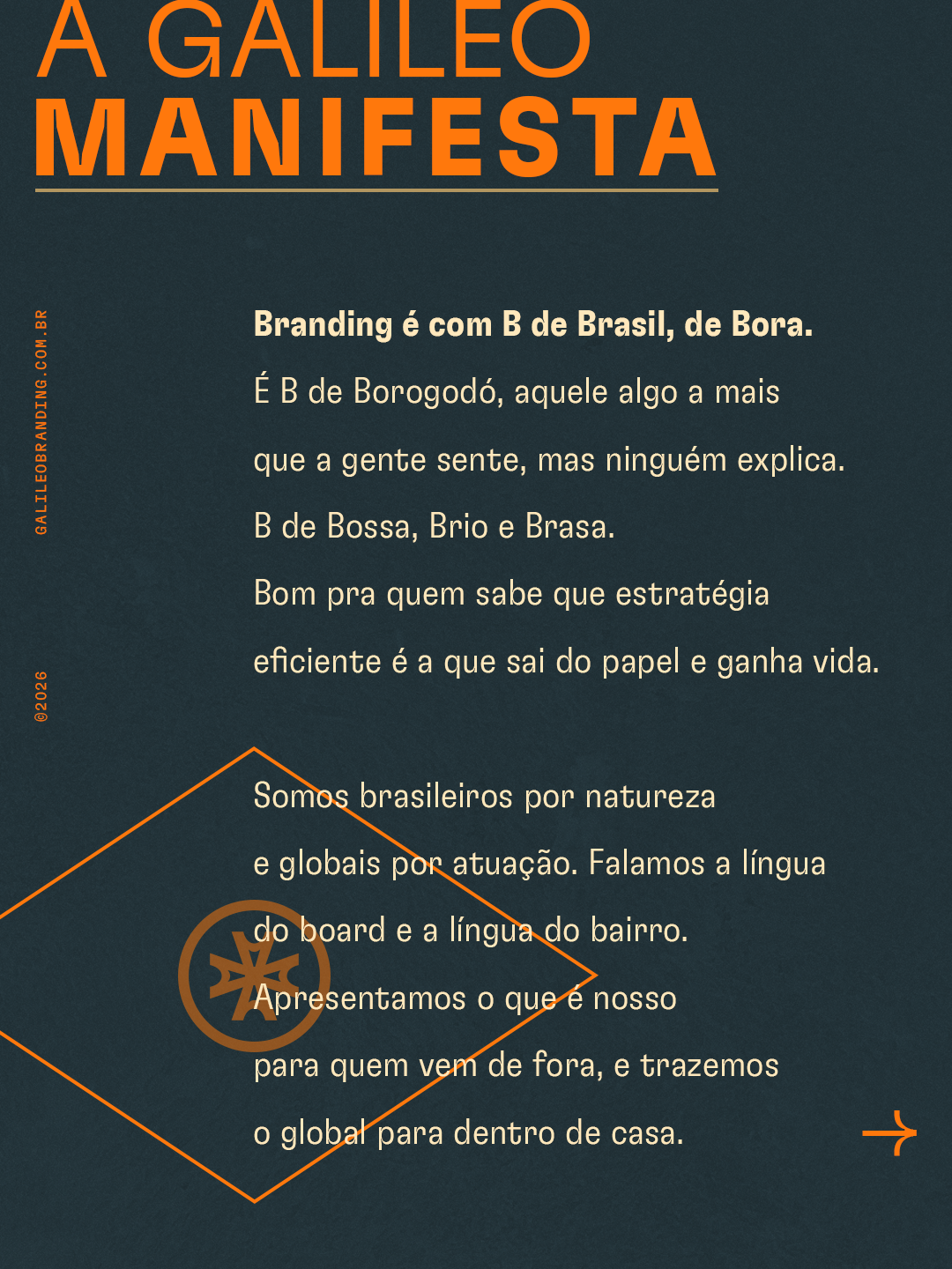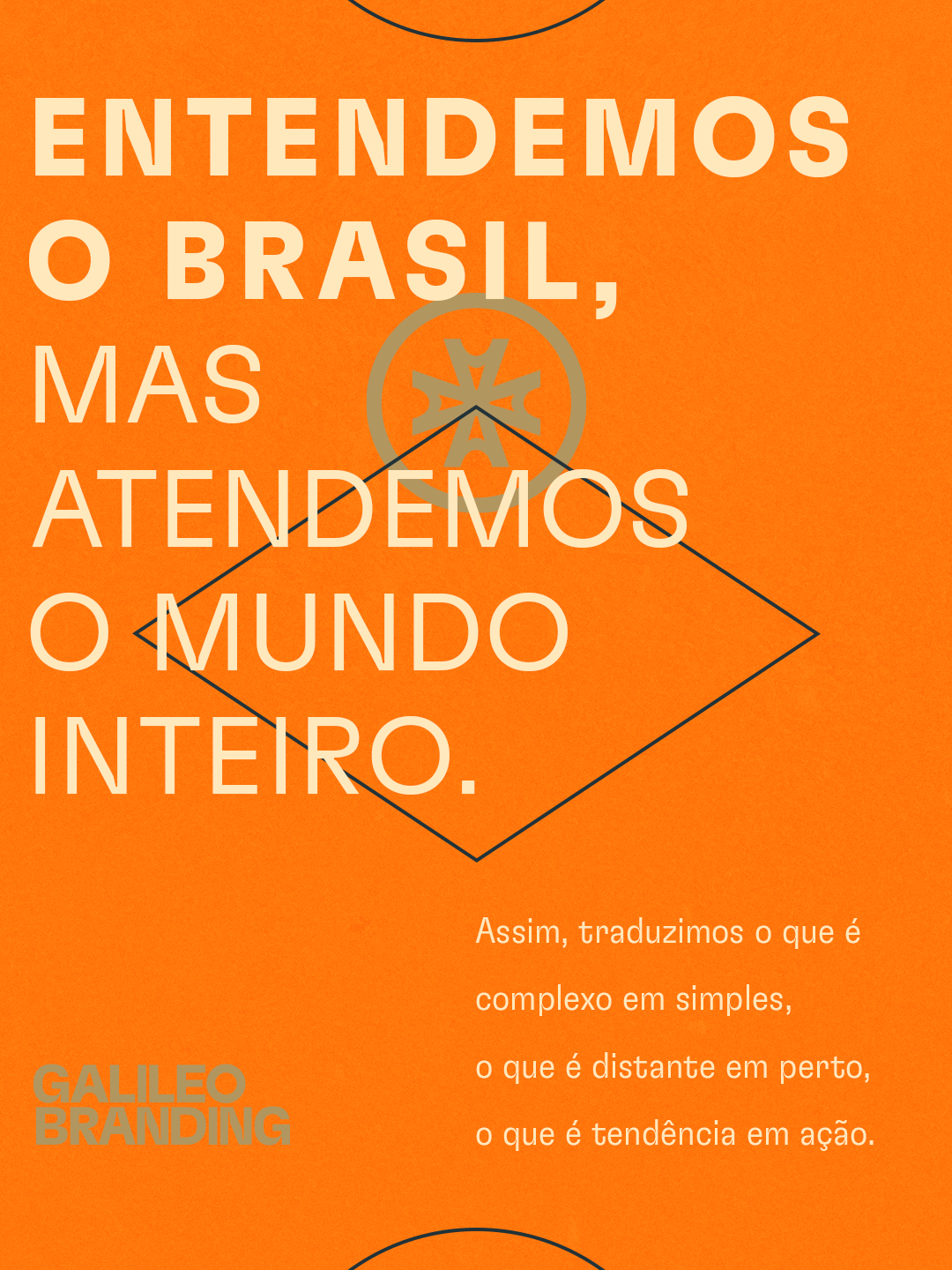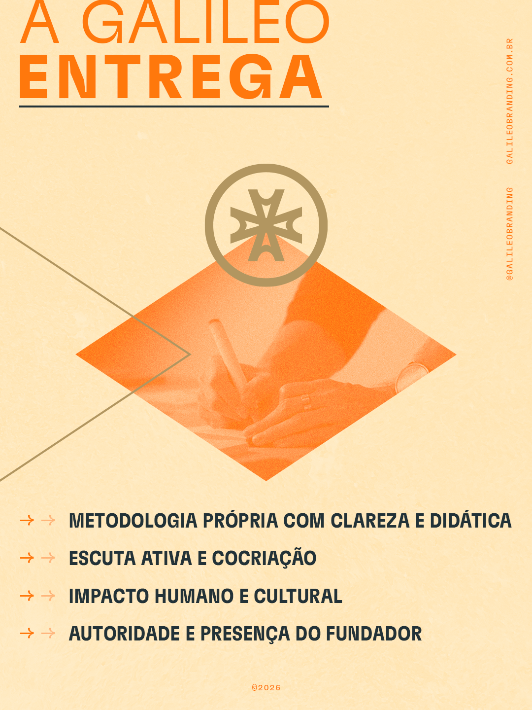 EN As the consultancy grew, Galileo Branding began operating across multiple fronts — consulting, content, and educational products — without sufficiently clear visual distinctions between them. This created overlapping perceptions and made it harder to strengthen the company as an institution independent from its founder. The challenge was to reorganize this brand architecture and structure a consistent visual system capable of communicating method, sophistication, and strategic clarity, while differentiating Galileo within the branding consultancy market. It was also necessary to prepare the brand to operate with greater autonomy, maintaining its authority and closeness to the market.